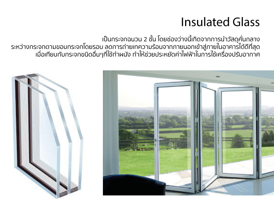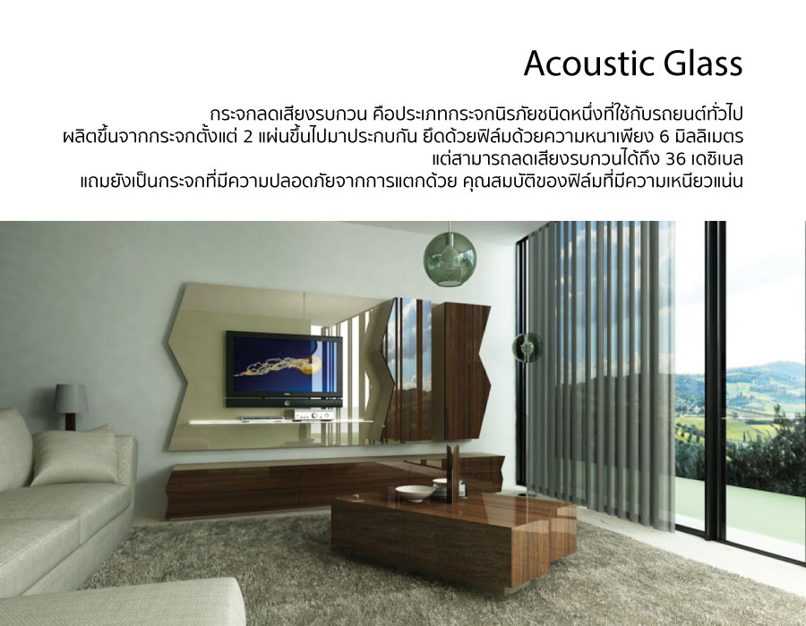 - กระจกสำหรับงานกรุผนังภายนอกเพื่อลดเสียงรบกวนจากภายนอก