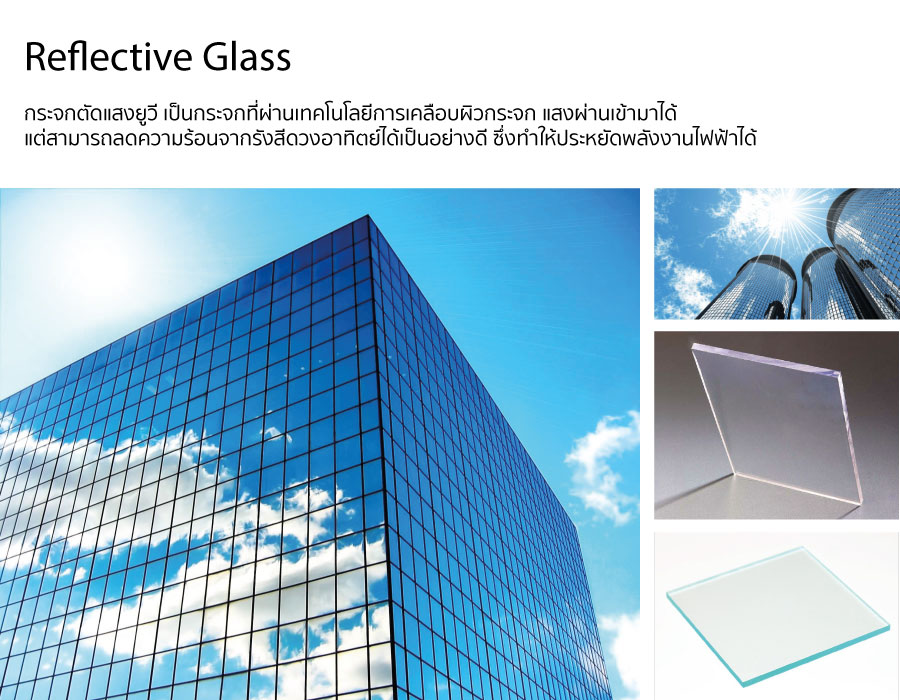 กระจก ตัดแสงยูวี เป็นกระจกที่ผ่านเทคโนโลยีการเคลือบผิวกระจก ช่วยประหยัดพลังงานของระบบปรับอากาศภายใน ช่วยป้องกันความร้อน แต่ในขณะเดียวกันแสงผ่านได้มากเป็นพิเศษ ช่วยส่งผลให้แสงที่ผ่านเข้ามาเพียงพอต่อความต้องการในการใช้แสงในระหว่างวัน