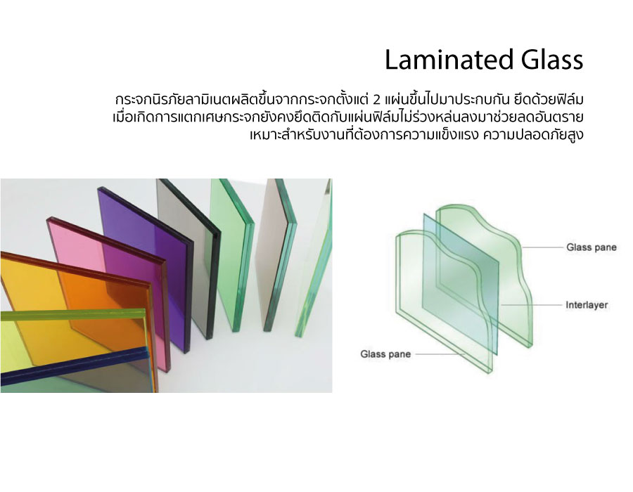 - ควรระมัดระวังอย่าให้สารเคมีดดนขอบกระจกลามิเนต เพราะอาจทำให้ฟิล์มเสียหายได้
